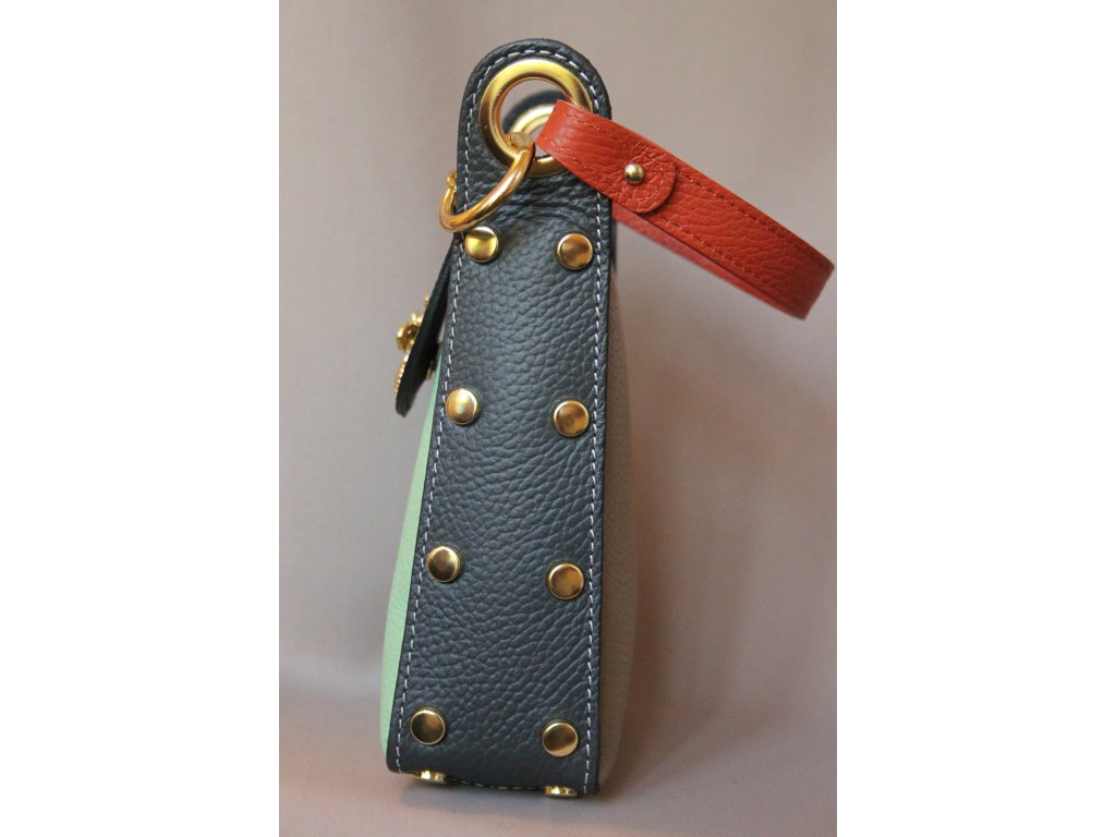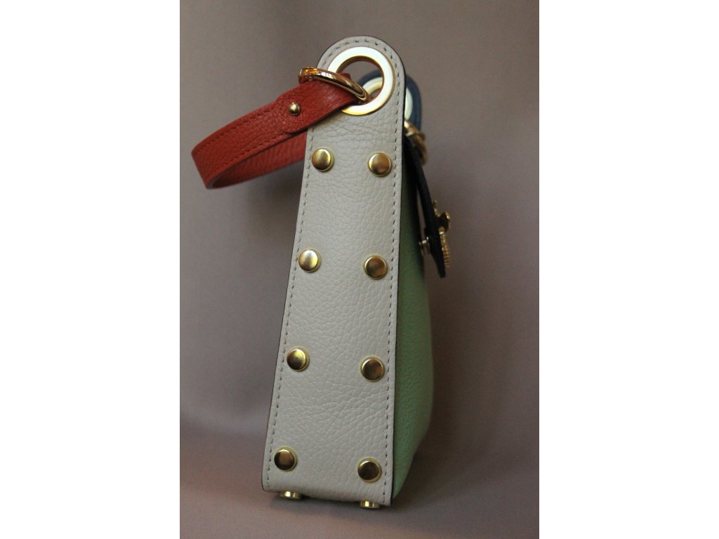 Dámská kožená kabelka – pestré barvy, zlaté detaily, originální design