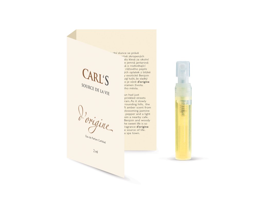 Luxusní parfém CARL'S Source de La Vie (Pramen života) d'Origine Eau de Parfum Carlsbad charakterizuje jemná jantarová vůně, jasmín, svěží tóny červeného pepře, Benjoin, santalové dřevo. Balení obsahuje 2ml.