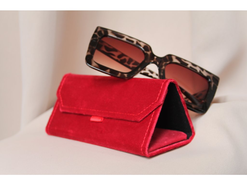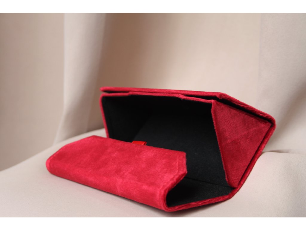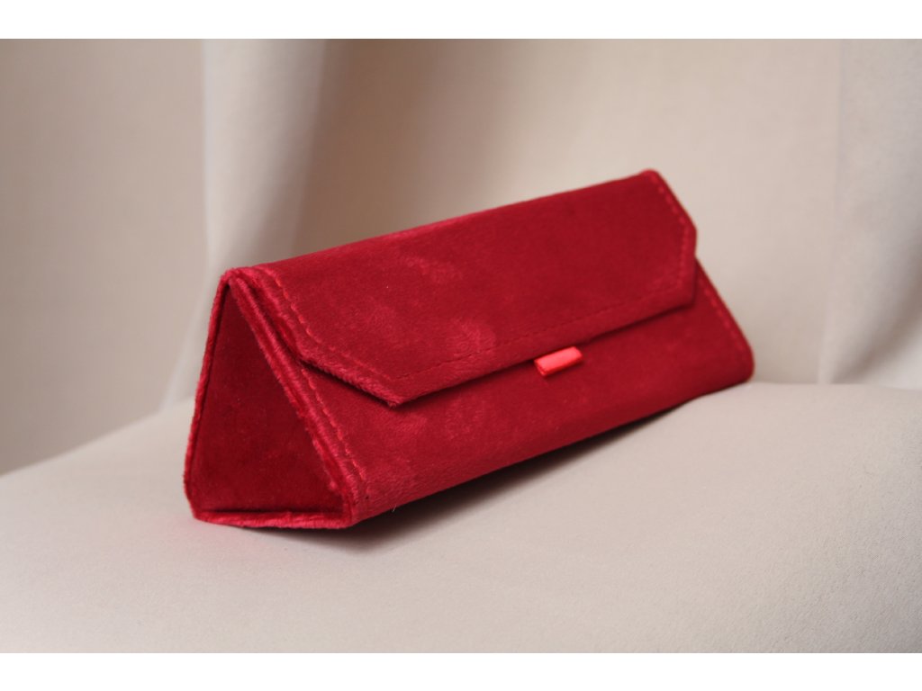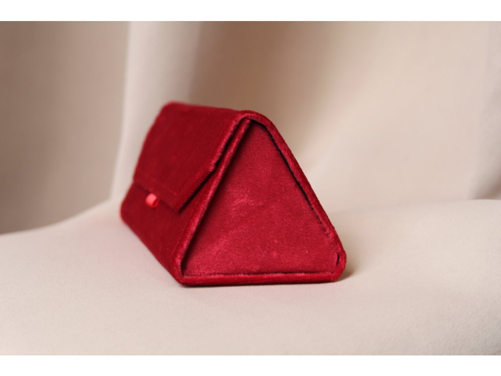 Chraňte své brýle stylově s elegantním pouzdrem v červené barvě. Vyrobené z jemného semišového materiálu, působí luxusně na pohled i na dotek. Unikátní trojúhelníkový tvar dodává moderní vzhled a zároveň poskytuje maximální ochranu proti poškrábání či poškození skel.