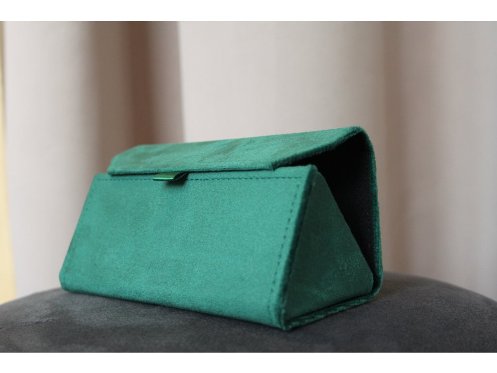 Pouzdro na brýle – smaragdově zelené, semišové, trojúhelníkový tvar