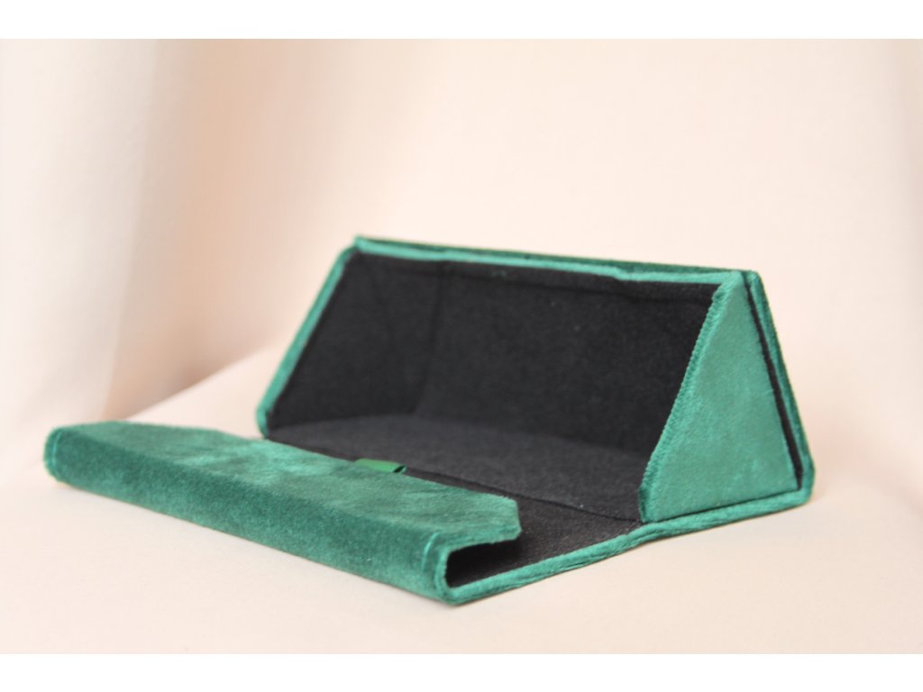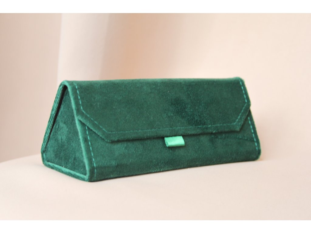 Chraňte své brýle stylově s elegantním pouzdrem ve smaragdově zelené barvě. Vyrobené z jemného semišového materiálu, působí luxusně na pohled i na dotek. Unikátní trojúhelníkový tvar dodává moderní vzhled a zároveň poskytuje maximální ochranu proti poškrábání či poškození skel.