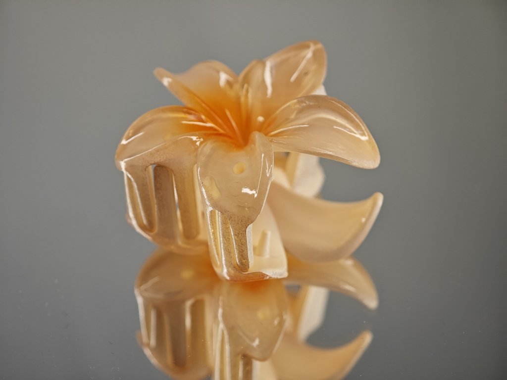 Aloha Bloom je stylový skřipec ve tvaru havajské květiny, který přináší kousek tropického ráje přímo do vašeho účesu. Jemný, ale pevný design skřipce spojuje praktickou funkčnost s okouzlujícím exotickým vzhledem.