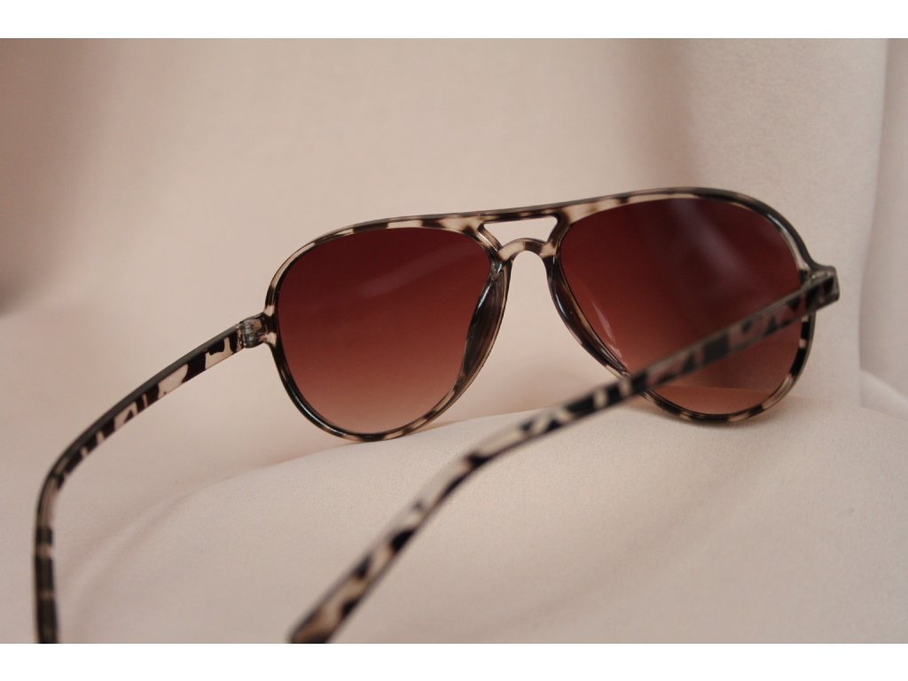 Sluneční brýle Amber Aviator – pilotky s transparentními rámečky v černohnědém žíhování a hnědými skly pro originální styl.