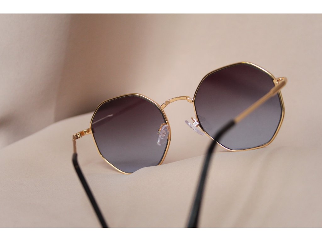 Sluneční brýle Golden Edge kombinují eleganci zlatých kovových rámečků s odvážným tvarem skel, které jsou kulaté, ale zároveň jemně hranaté. Zatmavená skla dodávají brýlím sofistikovaný charakter a poskytují spolehlivou ochranu proti slunečnímu záření.