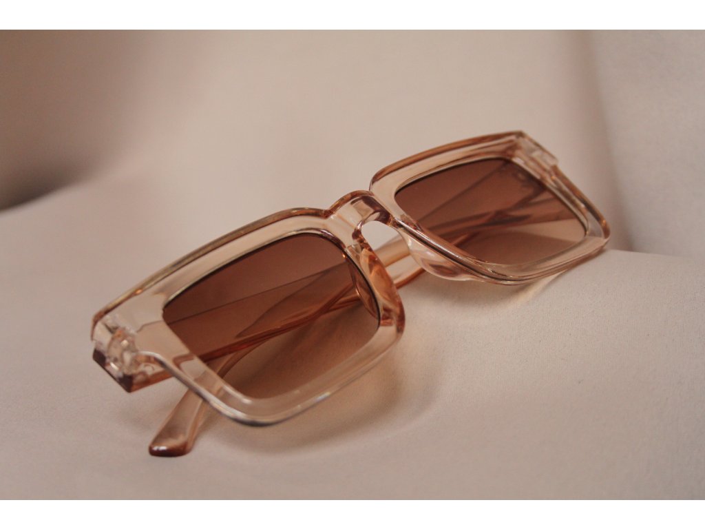Sluneční brýle Sand Glow – transparentní světle hnědé rámečky s hnědými skly pro jemný a elegantní look.